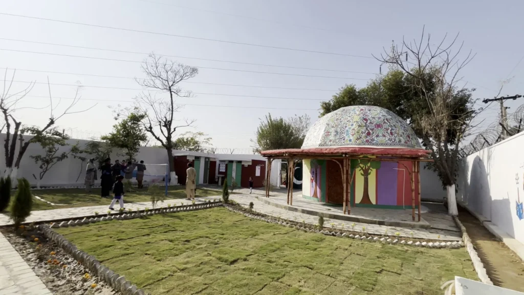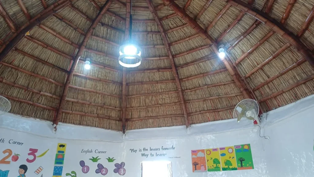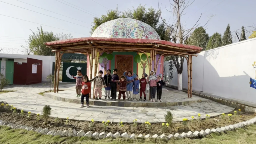 With technical support from the Heritage Foundation, the classroom was designed by Yasmeen Lari, Pakistan’s first female architect and a global leader in low-carbon, environmentally responsible construction. Her zero-carbon bamboo design combines innovation, cultural relevance, and climate resilience.