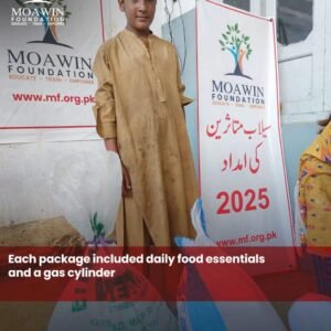 Moawin Foundation distributed 100 food ration bags and gas cylinders to flood-affected households in Tehsil Dagar, District Buner, reaffirming our commitment to serving humanity in times of need.